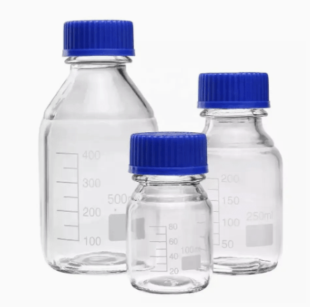 Lab Bottle Pyrex Glass Screw-Cap and Pouring Ring, Polypropylene, Clear, Transparent and Durable Lab Bottle.